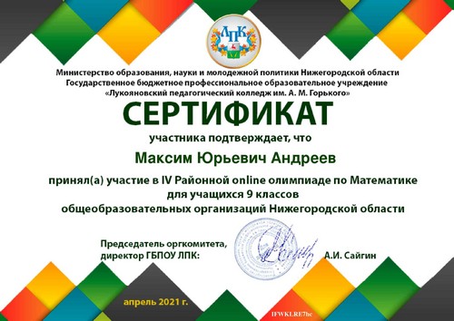 14 апреля Андреев Максим и Галоян Давид, обучающиеся 9 класса Шутиловской основной школы приняли активное участие в IV районной online олимпиаде по математике (руководитель: Майорова А.И.).