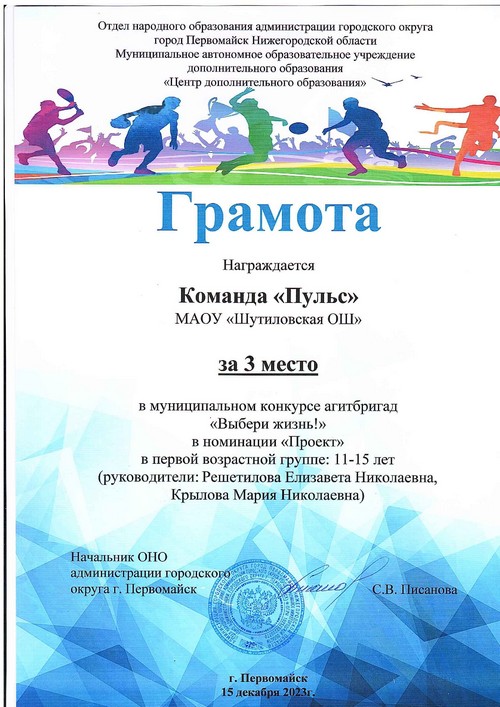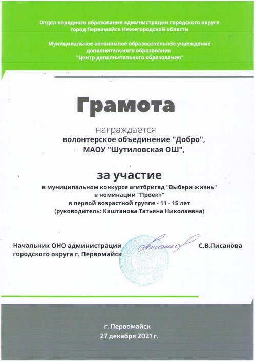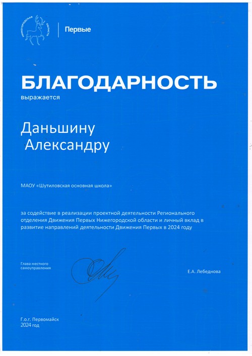 В рамках итоговой конференции местного отделения Движения Первых по итогам 2024 года, которая состоялась в г.Первомайск, активисты Первичного отделения Движения Первых МАОУ «Шутиловская ОШ» были награждены благодарностями.