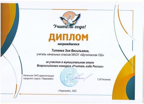 Педагог МАОУ «Шутиловская ОШ» - участник всероссийского конкурса