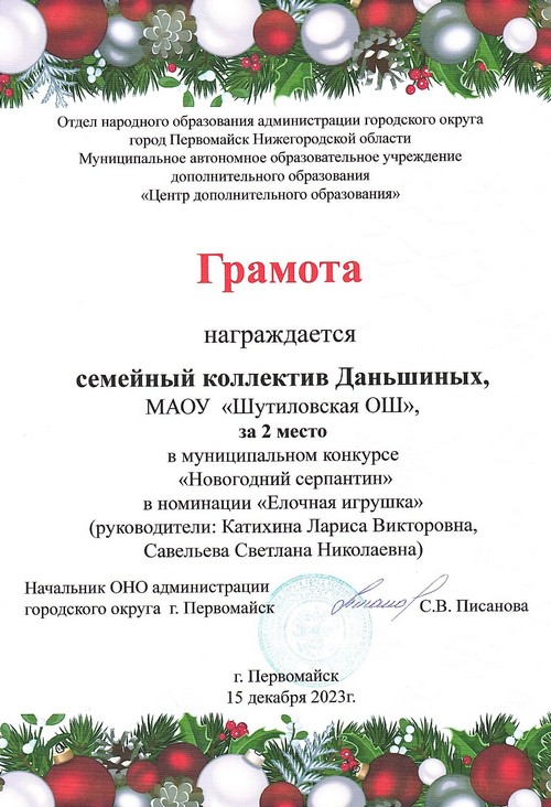 Семейный коллектив Даньшиных МАОУ «Шутиловская ОШ» принял участие в фестивале «Уют родного очага» в номинации «Семейная мастерская» (руководитель: Катихина Л.В.).
