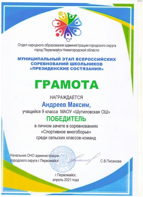 13 февраля команда Шутиловской основной школы: Алёшкина Юлия, Арешин Артём и Мысягин Кирилл, обучающиеся 6 класса, Андреева Ксения, Комлева Василисса и Максимов Максим, обучающиеся 8 класса, приняли активное участие во Всероссийской массовой лыжной гонке в городском округе город Первомайск Нижегородской области «Лыжня России-2021» (руководитель: Сергеева А.М.).