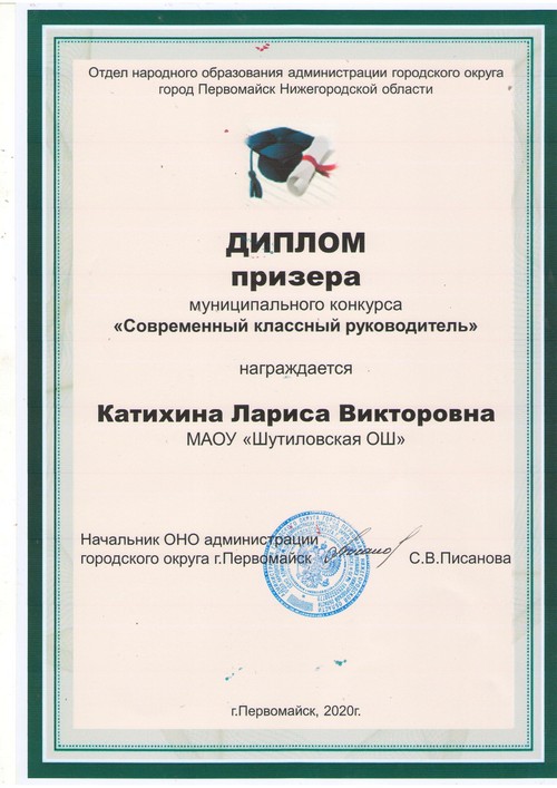 Подведены итоги муниципального конкурса профессионального мастерства «Современный классный руководитель-2020», в котором участвовала Катихина Лариса Викторовна, классный руководитель 3 класса Шутиловской основной школы.