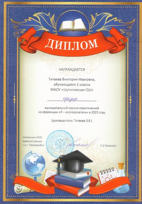 Подведены итоги муниципального этапа научно-практической конференции «Я познаю мир, в котором приняла участие Шкалова София, обучающаяся 3 класса Шутиловской основной школы (руководитель: Катихина Л.В.).