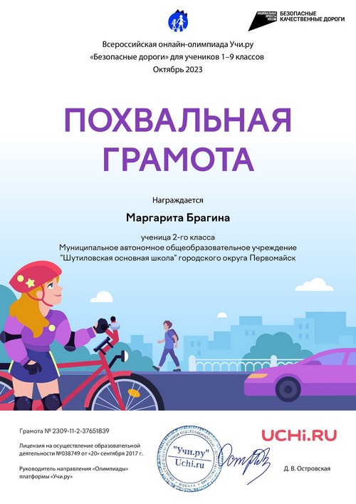 Тимофеев Максим, Титаева Светлана и Шкалофа София, обучающиеся МАОУ "Шутиловская ОШ", приняли участие в межрегиональном конкурсе видеороликов «В объективе БезОпасности» среди обучающихся Приволжского федерального округа в номинации «Соблюдая ПДД» (руководитель: Кузина Н.И.).