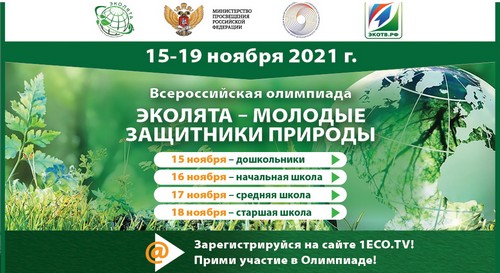 С 15 по 19 ноября 2021 года проводится ежегодная Всероссийская олимпиада "Эколята - молодые защитники природы -2021" в онлайн формате.