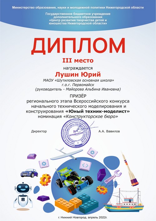 19 мая на Слете детских общественных объединений, посвящённом 100-летию Всероссийской пионерской организации, активисты детского общественного объединения «Радуга» Шутиловской основной школы Иванова Екатерина и Титаева Светлана награждены грамотами за активное участие в деятельности Союза детских объединений «Блики» городского округа город Первомайск Нижегородской области.