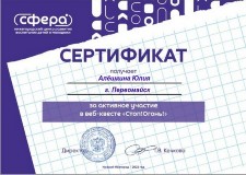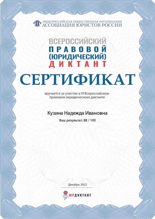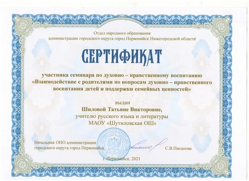 В период с 27 сентября по 24 ноября 2021 года, в рамках реализации программ внеурочной деятельности с применением дистанционных образовательных технологий по профилактической работе с несовершеннолетними, Кузина Надежда Ивановна, МАОУ «Шутиловская ОШ», в целях получения профессиональных компетенций специалистов, предъявляемым по квалификации: «Социальный педагог» прошла обучение.