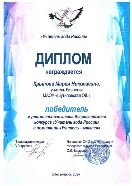 19 февраля 2024 года в Первомайской средней школе прошел муниципальный этап Всероссийского конкурса профессионального мастерства «Учитель года России-2024», в котором приняла участие наша Мария Николаевна Крылова, учитель биологии.