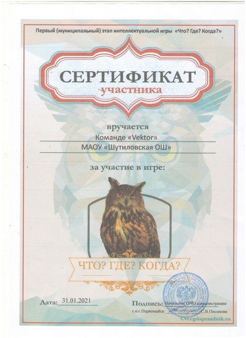 Команда «Вектор» МАОУ «Шутиловская ОШ» приняла активное участие в первом (муниципальном) этапе интеллектуальной игре «Что? Где? Когда?» (руководитель: Титаева З.В.).