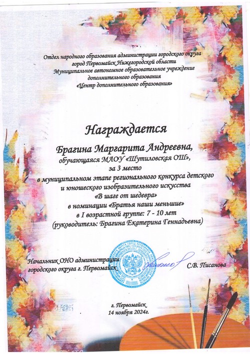 Обучающиеся МАОУ «Шутиловская ОШ» приняли участие в муниципальном этапе регионального конкурса детского и юношеского изобразительного искусства «В шаге от шедевра»