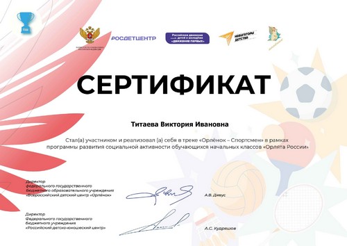Учитель начальных классов Шутиловской основной школы Титаева Зоя Васильевна стала участником и реализовала себя в треке "Орленок - Лидер" в рамках программы развития социальной активности обучающихся начальных классов "Орлята России".