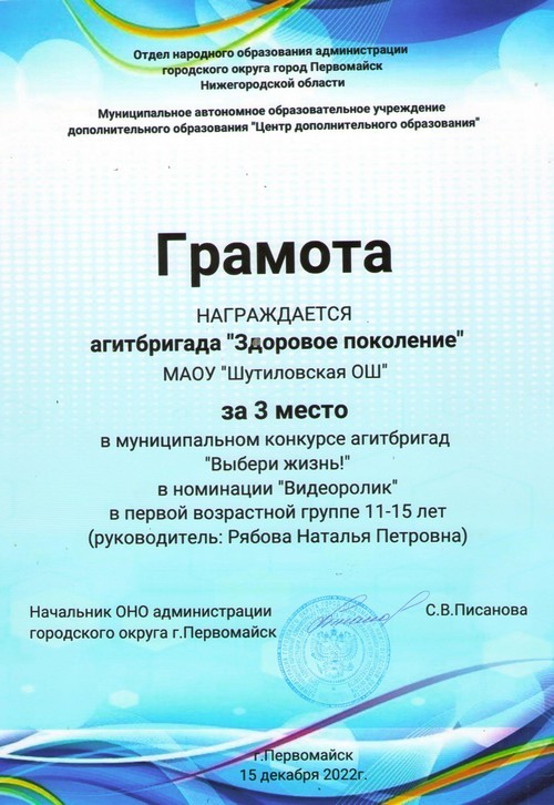 В рамках итоговой конференции местного отделения Движения Первых по итогам 2024 года, которая состоялась в г.Первомайск, активисты Первичного отделения Движения Первых МАОУ «Шутиловская ОШ» были награждены благодарностями.