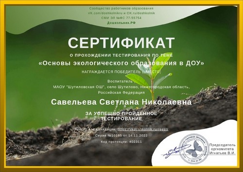 С 14 по 21 ноября на портале, в рамках реализации федерального проекта «Успех каждого ребенка» национального проекта «Образование», обучающиеся 6 класса и педагоги МАОУ «Шутиловская ОШ», приняли активное участие во Всероссийском экологическом диктанте- 2021.