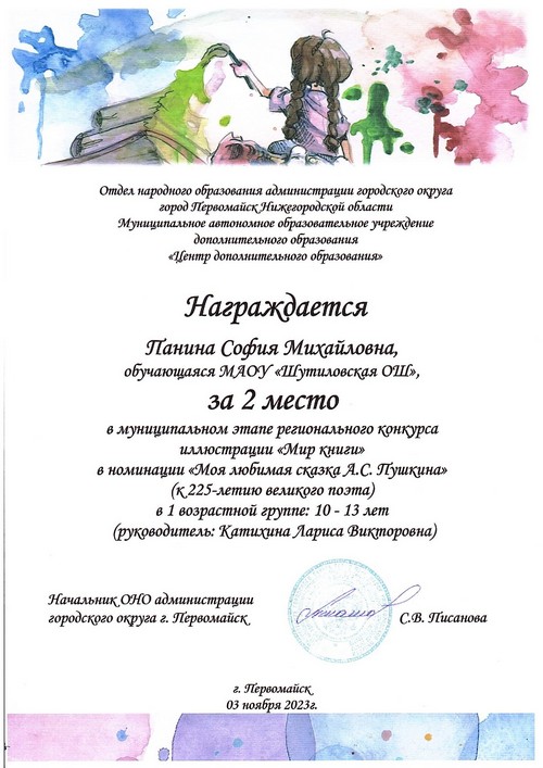 Подведены итоги муниципального конкурса «Мир книги», в котором принимала участие Комлева Василисса, воспитанница творческого объединения «Волшебная кисть», активистка ДОО «Радуга», обучающаяся 8 класса Шутиловской основной школы (руководитель: Кузина Н.И.).
