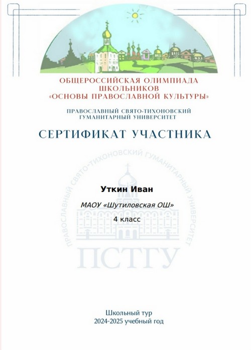 Обучающиеся 4-9 классов МАОУ «Шутиловская ОШ» под руководством учителя истории и обществознания Шематоновой М.М. приняли участие в школьном туре Общероссийской олимпиады школьников «Основы православной культуры».