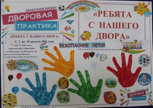МАОУ «Шутиловская ОШ» информирует, что с 2 августа по 15 августа 2021 года в с.Шутилово, ул. Школьная, д.10 будет открыта Дворовая площадка «Ребята с нашего двора» для организованного досуга детей (старшеклассники-стажёры выступят организаторами в проекте «Дворовая практика»).