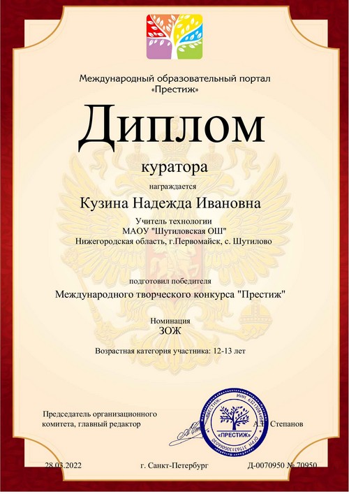 В целях расширения общего кругозора детей и активизации внеклассной и внешкольной работы обучающиеся 8-9 классов МАОУ «Шутиловская ОШ» под руководством учителя химии Крыловой Марии Николаевны приняли участие в Международной дистанционной олимпиаде «Лучший урок» по предмету Химия.