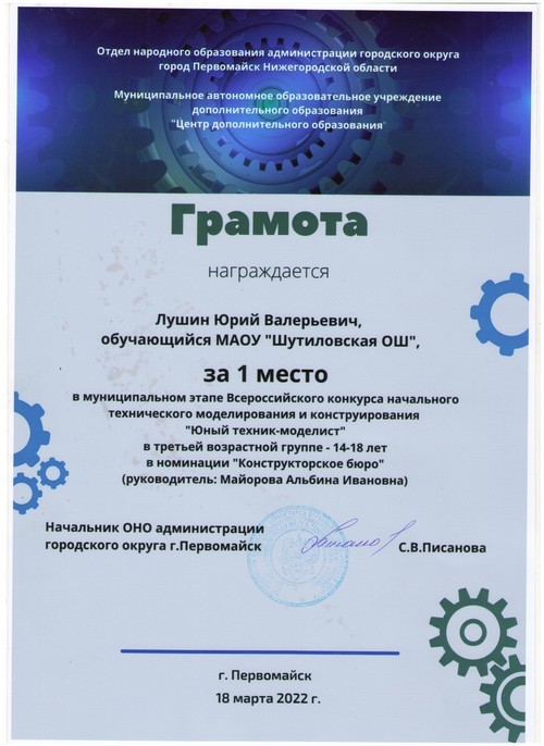 19 мая на Слете детских общественных объединений, посвящённом 100-летию Всероссийской пионерской организации, активисты детского общественного объединения «Радуга» Шутиловской основной школы Иванова Екатерина и Титаева Светлана награждены грамотами за активное участие в деятельности Союза детских объединений «Блики» городского округа город Первомайск Нижегородской области.