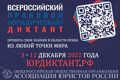С 3 по 12 декабря 2022 года проводится VI Всероссийский правовой (юридический) диктант.