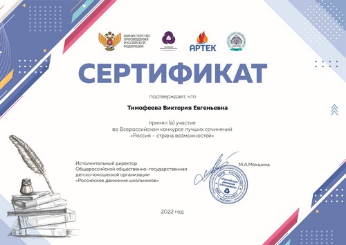 РДШ совместно с Министерством просвещения РФ, МДЦ "Артек", Российским детско-юношеским центром, Московским педагогическим государственным университетом запускают Всероссийский конкурс лучших сочинений "Россия — страна возможностей".